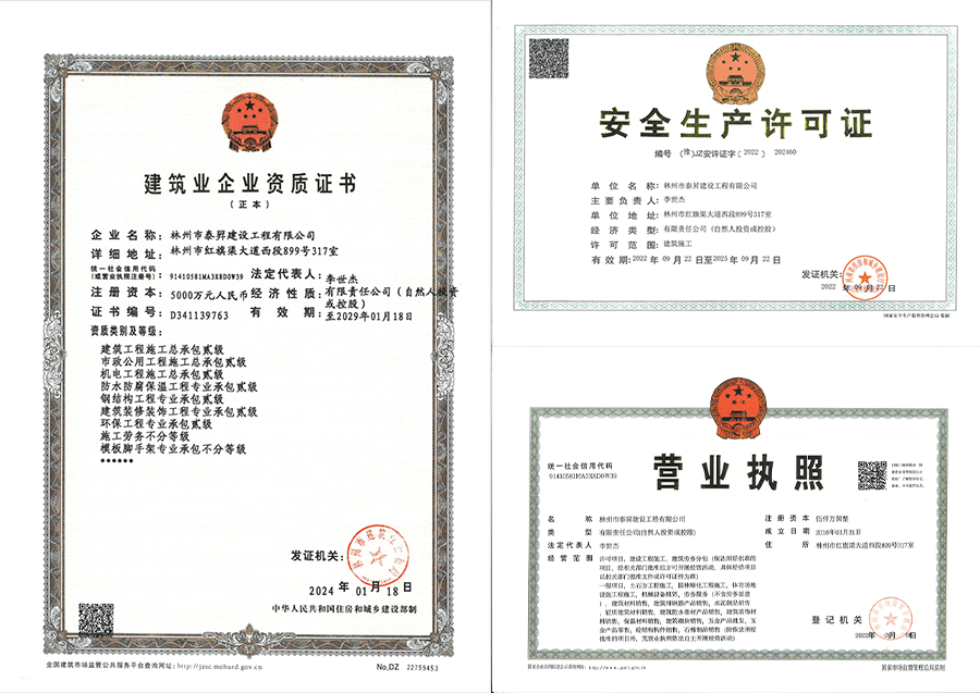 林州市泰昇建設工程有限公司始于1980年初,正式成立于2016年3月1日,注冊資金5000萬元,公司地址位于著名的“建筑之鄉”河南省林州市,是林州人創(chuàng)立的一家有著四十多年發(fā)展底蘊的專業(yè)化、標準化建筑工程公司。 公司現有員工376人,各類專業(yè)技術人員89人,其中一級建造師6人,二級建造師18人,擁有中高級職稱的工程技術和工程管理人員27人,初級技術管理人員38人。 “精細管理、精準經營,精益求精打造精品工程;為人樸實、工作扎實,踏踏實實做實企業(yè)發(fā)展。”這是泰昇人在艱苦的創(chuàng)業(yè)過程中磨礪出來的企業(yè)性格。